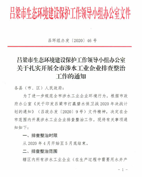 吕梁市关于扎实开展全市涉水企业排查整治工作的通知